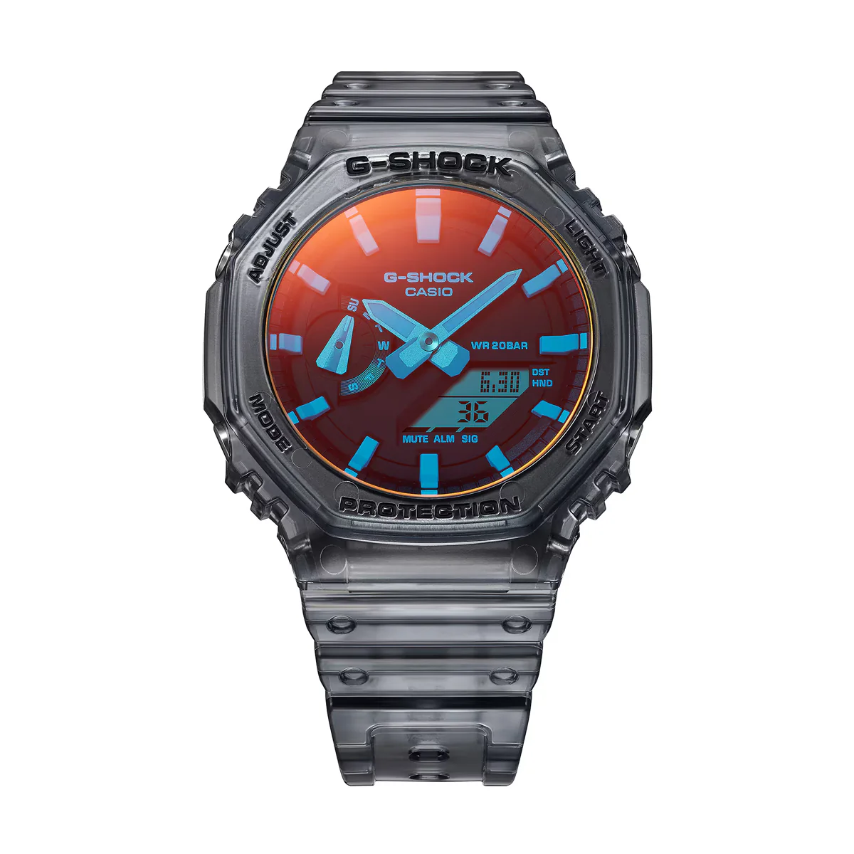 Set your mood to summertime and easy with a radiant G-SHOCK featuring a watch face in eye-catching color. This special vapor deposition process reflects various hues of light, capturing the vistas of the ever-changing seaside. These beach-inspired designs come in two color schemes — fresh white and blue evoking sun-drenched white sandy beaches, and cool translucent grey and orange conjuring the serenity of the beach at dusk. Thanks to this special coloring process, each watch shines with a different radiance for a one-of-a-kind look that is truly your own.