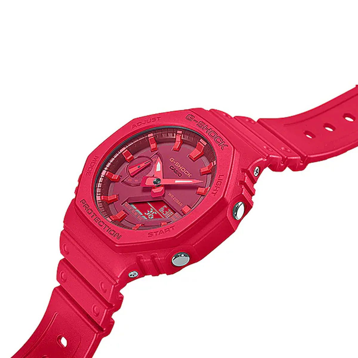 Additionally, the two-layer structure of the back cover also guards against impacts to the back of the watch. The shock-proof button structure also allows the exterior to be designed without a button guard.