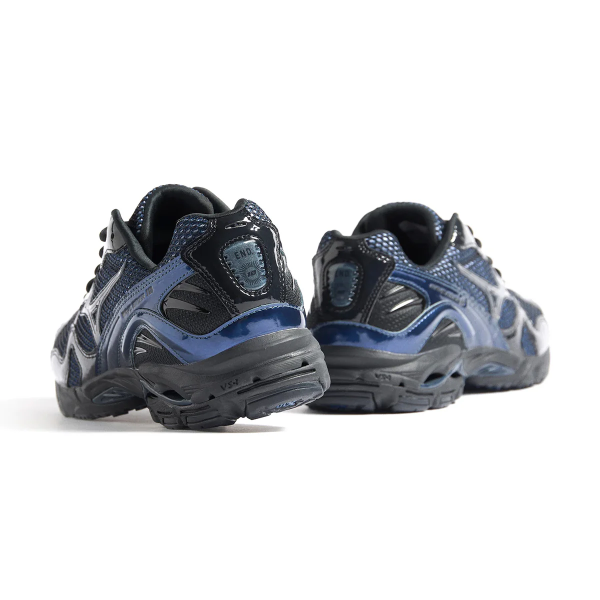 END. and Japanese sneaker icon Mizuno unite for the next instalment of the ‘Coastal’ series, reworking the Wave Rider 10 through a distinct lens. Set against the cold and restless tides of the North Sea, it’s a tribute to the untamed North East coastline. Mimicking the dark sea, the sneaker’s open mesh upper and textural elements give off a water ripple effect. Staying true to Mizuno’s signature metallic wave overlays, the design captures a slick, wet-look finish. Co-branding on the tongue takes the spotlight, while the END. logo makes its mark on the heel jewel.