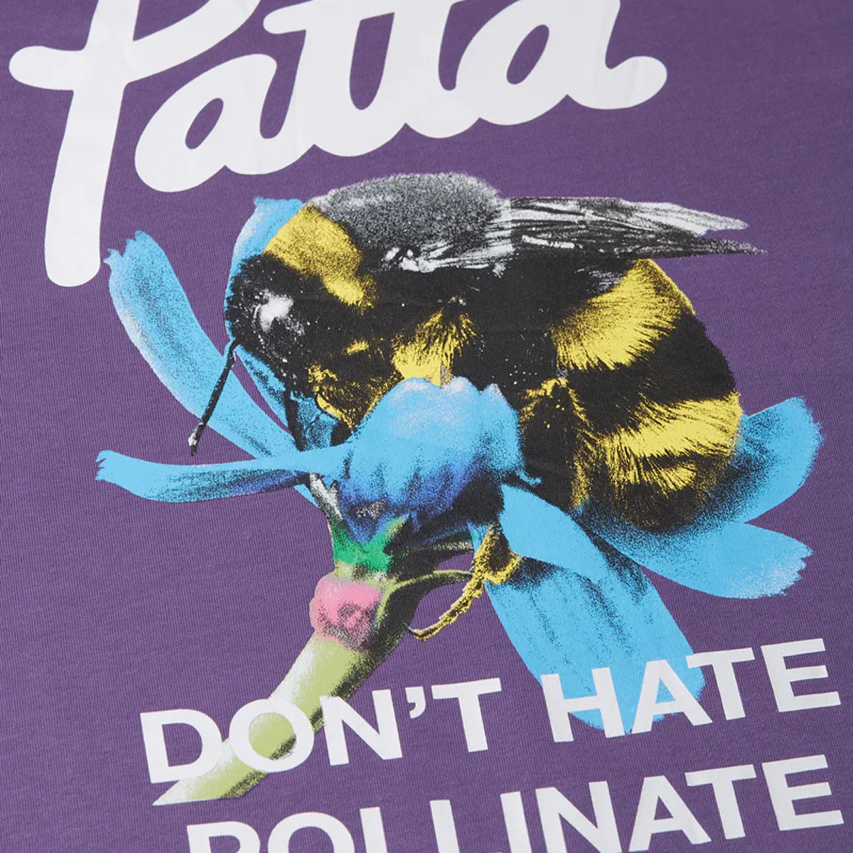 The Patta Bumble Bee T-Shirt comes in 250gsm 100% Cotton with a large premium screen printed Bumble Bee artwork on the back of the t-shirt. The front sees a screen printed Patta script logo on the left hand side of the chest.