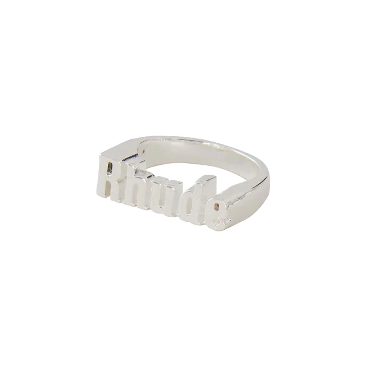 Rhude logo ring. Silver plated with hypoallergenic finish.