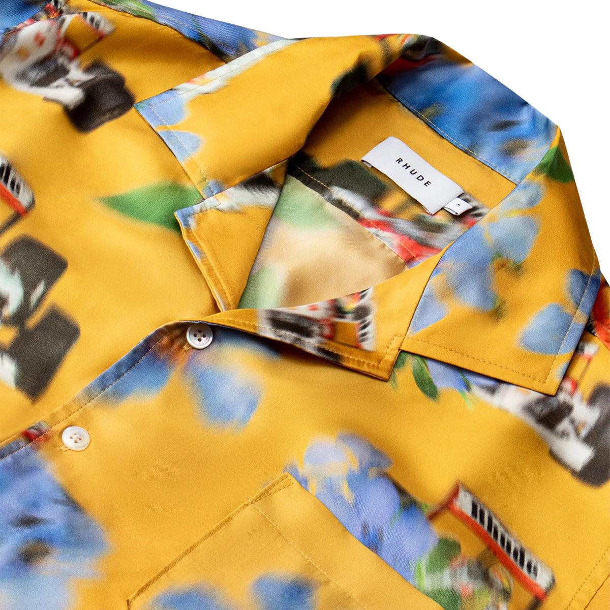 RHUDE's Loix shirt displays an artistic floral motif with graphic imagery. Crafted of silk, this collared style includes short sleeves and a chest slip pocket.