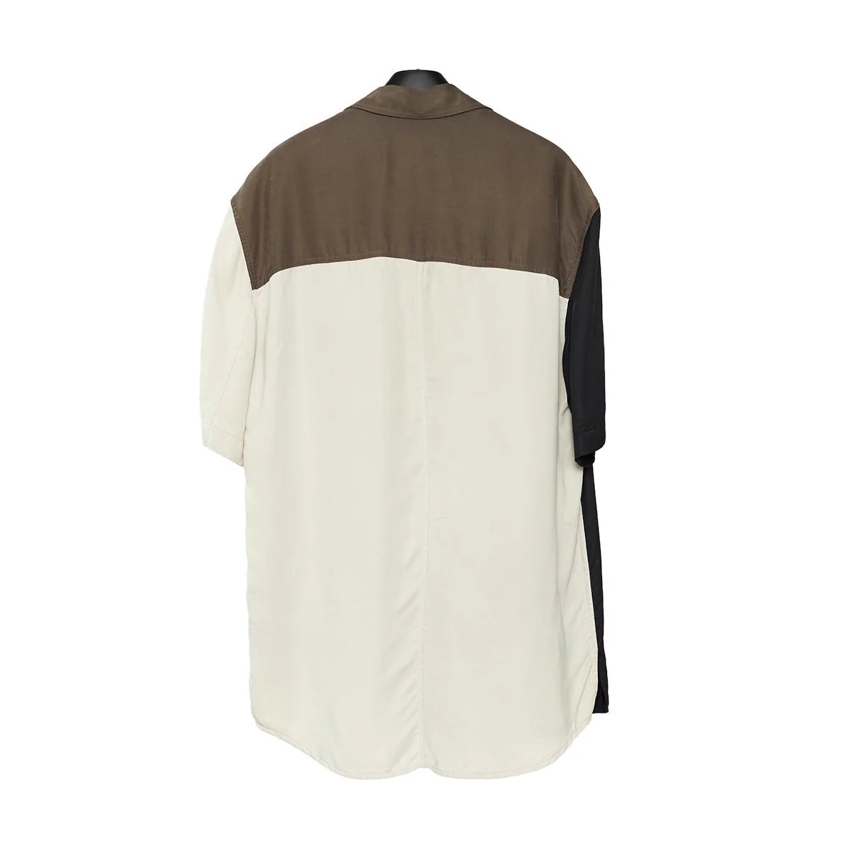 Short sleeve shirt in a velveteen cupro. Featuring a chest patch pocket and contrast colour fabric panelling.