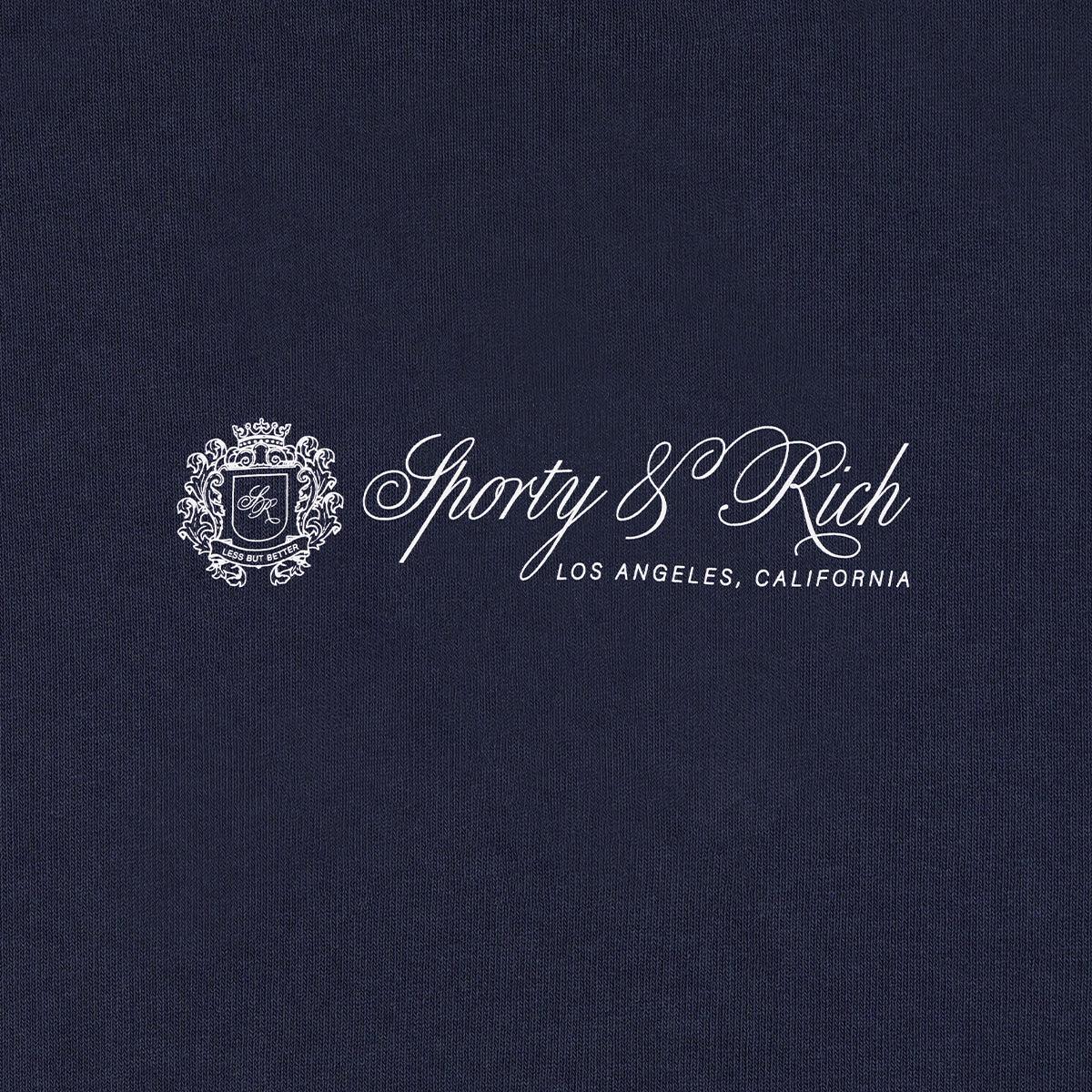 Regal Crewneck in Navy/White. Constructed of 100% USA grown cotton, crewnecks are pre-shrunk and fit slightly oversized. Crewnecks are made in Los Angeles where factory pays its employees above minimum wage + overtime and benefits.